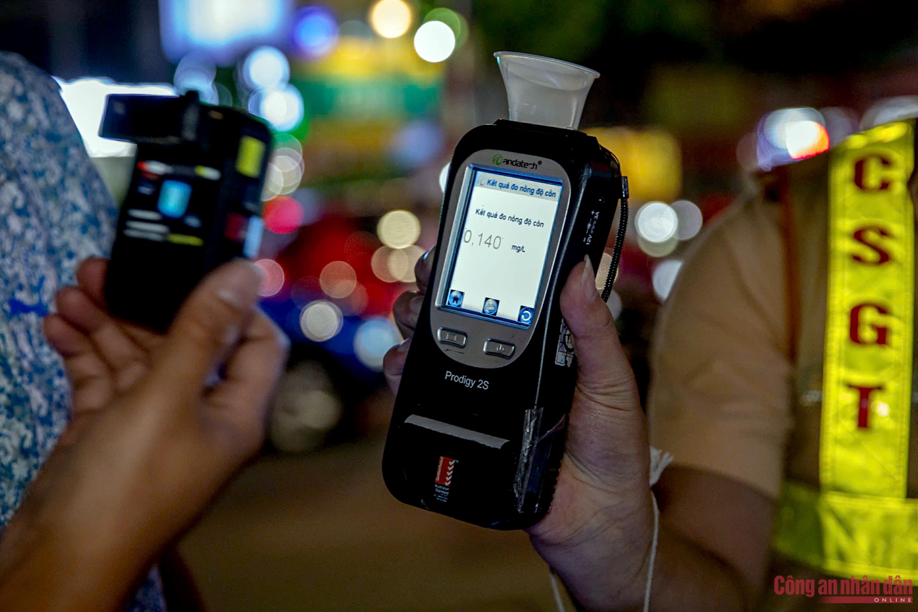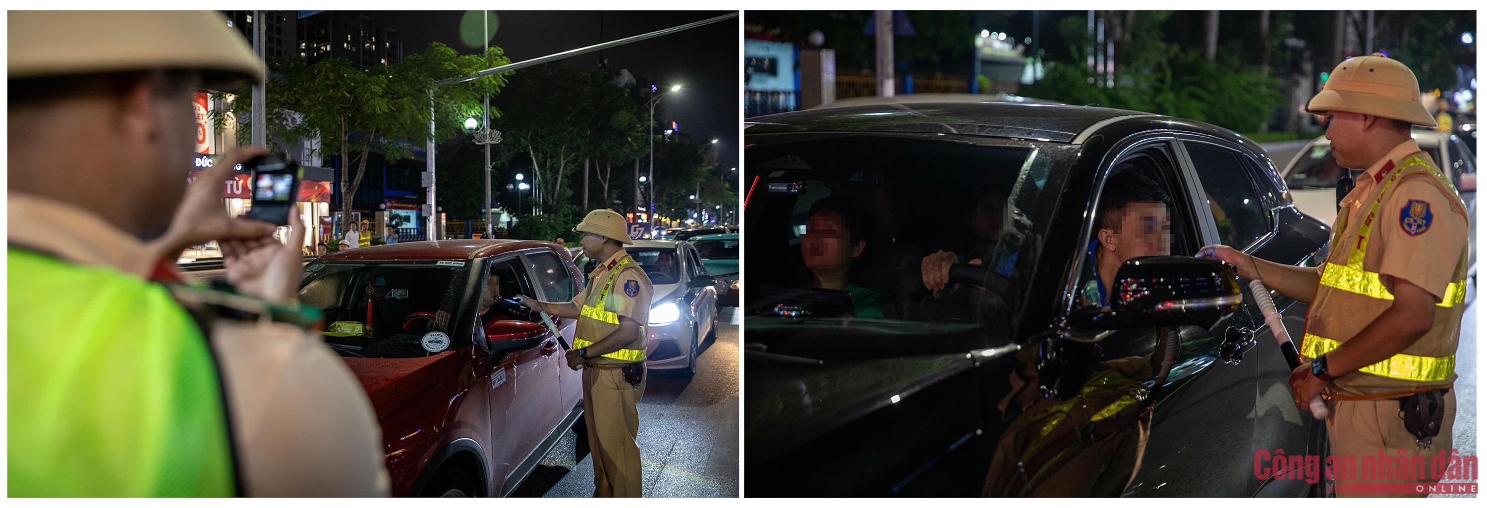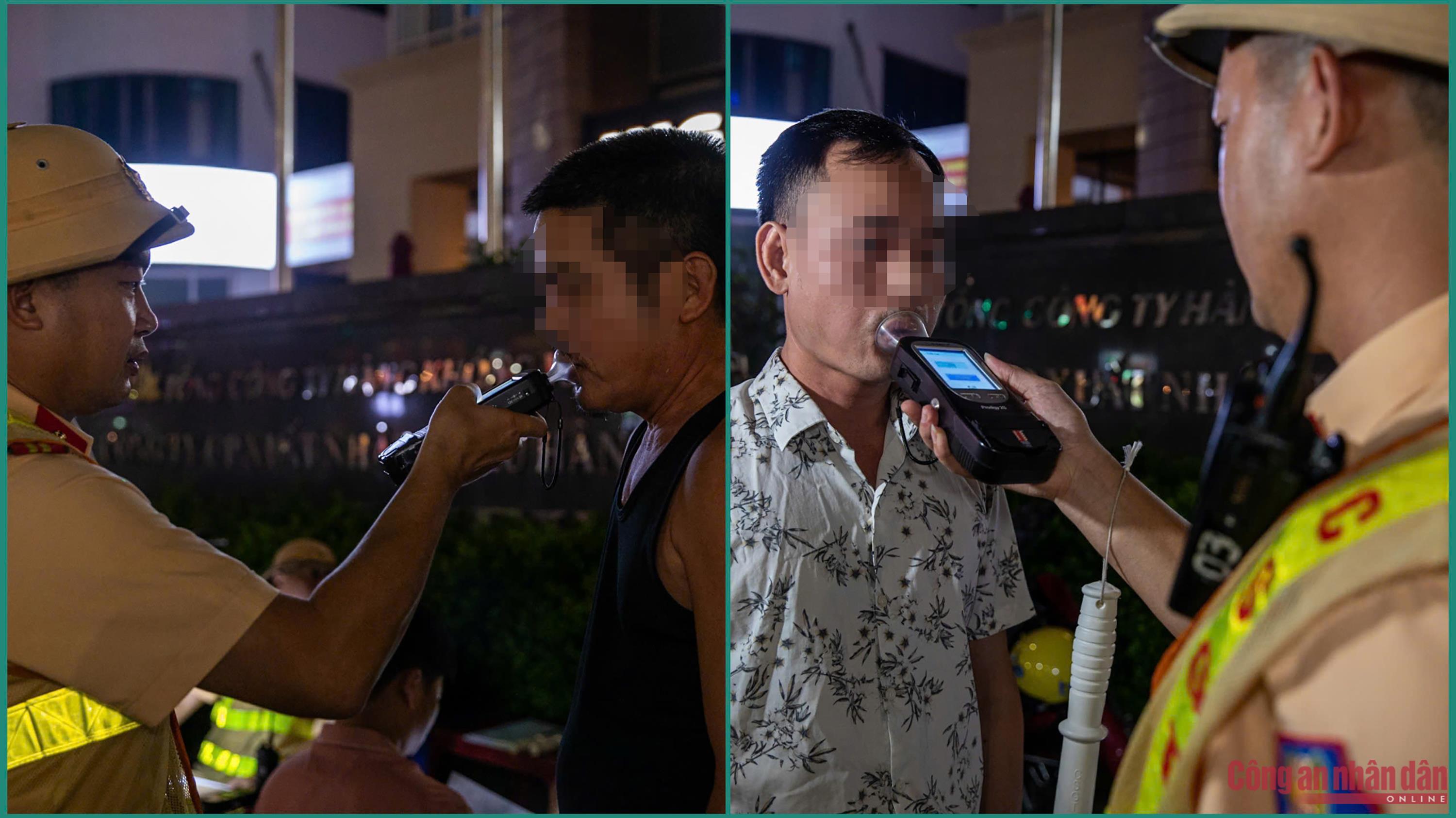 Thiếu tá Bùi Văn Quang, cán bộ Đội CSGT số 5 cho biết, vi phạm nồng độ cồn là một trong những nguyên nhân hàng đầu gây ra tai nạn giao thông nghiêm trọng. Pháp luật quy định "đã uống rượu bia thì không lái xe", tức là cấm tuyệt đối nồng độ cồn trong máu hoặc hơi thở khi điều khiển phương tiện giao thông. Mọi hành vi vi phạm đều bị xử phạt nghiêm khắc bao gồm phạt tiền rất cao, trừ điểm giấy phép lái xe hoặc tước bằng trong thời gian dài. Trong trường hợp gây tai nạn giao thông có liên quan đến nồng độ cồn, người vi phạm còn có thể bị truy cứu trách nhiệm hình sự.Ghi nhận thực tế cùng các tổ công tác của Đội CSGT số 5 đến hơn 23h đêm, qua dừng kiểm tra hàng trăm lượt phương tiện bao gồm cả ô tô và xe máy, Cảnh sát đã phát hiện nhiều trường hợp vi phạm nồng độ cồn, chủ yếu là người điều khiển xe máy.Khi được CSGT thông báo mức vi phạm và xử phạt, tất cả các lái xe đều khẳng định bản thân tuân thủ luật, ý thức rất rõ việc uống rượu bia thì không được điều khiển xe máy ra đường. Nhưng khi nói về nguyên nhân tại sao vi phạm thì tất cả đều ấp úng, không nói ra được.Cảnh sát sử dụng máy quay chuyên dụng ghi lại kết quả kiểm tra vi phạm nồng độ cồn ở mức 1 (dưới 0,25 mg/L khí thở) của một tài xế xe máy.Đơn cử như trường hợp nam tài xế xe máy B.V.T. qua kiểm tra phát hiện vi phạm nồng độ cồn mức 0,335 mg/L khí thở. Nam tài xế cho biết, trong bữa ăn tối có được mời uống chút rượu ngâm nhưng rất ít "chỉ hai cái long đen" nên khá tự tin rằng không bị say và nếu có thổi nồng độ cồn cũng không lên nhưng kết quả thực tế qua máy đo của CSGT lại phát hiện ở mức cao.Cá biệt, có trường hợp tài xế V.H. vi phạm nồng độ cồn ở mức 0,731 mg/L khí thở, gấp gần 2 lần mức "kịch khung" được quy định tại Nghị định 168. Lý do được người này cho biết là bởi "nể bạn" nên đã uống bia từ chiều đến tối rồi điều khiển xe máy về nhà.Quá trình tổ CSGT làm nhiệm vụ, nhiều trường hợp tài xế xe máy sau khi sử dụng rượu bia khi phát hiện lực lượng chức năng đã tìm cách "đổi tài" rồi xuống xe dắt bộ để trốn tránh việc kiểm tra.Cảnh sát lập biên bản xử phạt các trường hợp vi phạm.Cũng theo Đội CSGT số 5, trong thời gian qua, đơn vị đã đẩy mạnh công tác tuyên truyền đến người dân cũng như các nhà hàng, quán nhậu nhằm nâng cao ý thức tuân thủ luật giao thông. Song song với đó, hoạt động tuần tra kiểm soát, xử lý vi phạm nồng độ cồn vẫn được duy trì, làm mạnh, làm rát, liên tục thay đổi trong nhiều khung giờ trên các tuyến thuộc địa bàn Đội quản lý để kịp thời phát hiện, xử lý nghiêm vi phạm. Việc kiểm soát chặt nồng độ cồn tại các cửa ngõ Thủ đô không chỉ góp phần răn đe, nâng cao ý thức của người tham gia giao thông mà còn thể hiện tinh thần quyết liệt của lực lượng CSGT Hà Nội trong bảo đảm trật tự, an toàn giao thông, nhất là vào thời điểm cuối tuần và các dịp lễ, sự kiện lớn.Theo báo cáo của Phòng CSGT Hà Nội, từ ngày 2/10 đến 8/10, thông qua công tác tuần tra kiểm soát, lực lượng CSGT toàn thành phố đã xử lý 2.917 trường hợp vi phạm, tạm giữ 1.244 phương tiện, tước giấy phép lái xe 68 trường hợp, trừ điểm giấy phép lái xe 384 trường hợp. Trong đó, riêng vi phạm nồng độ cồn có 855 trường hợp.
