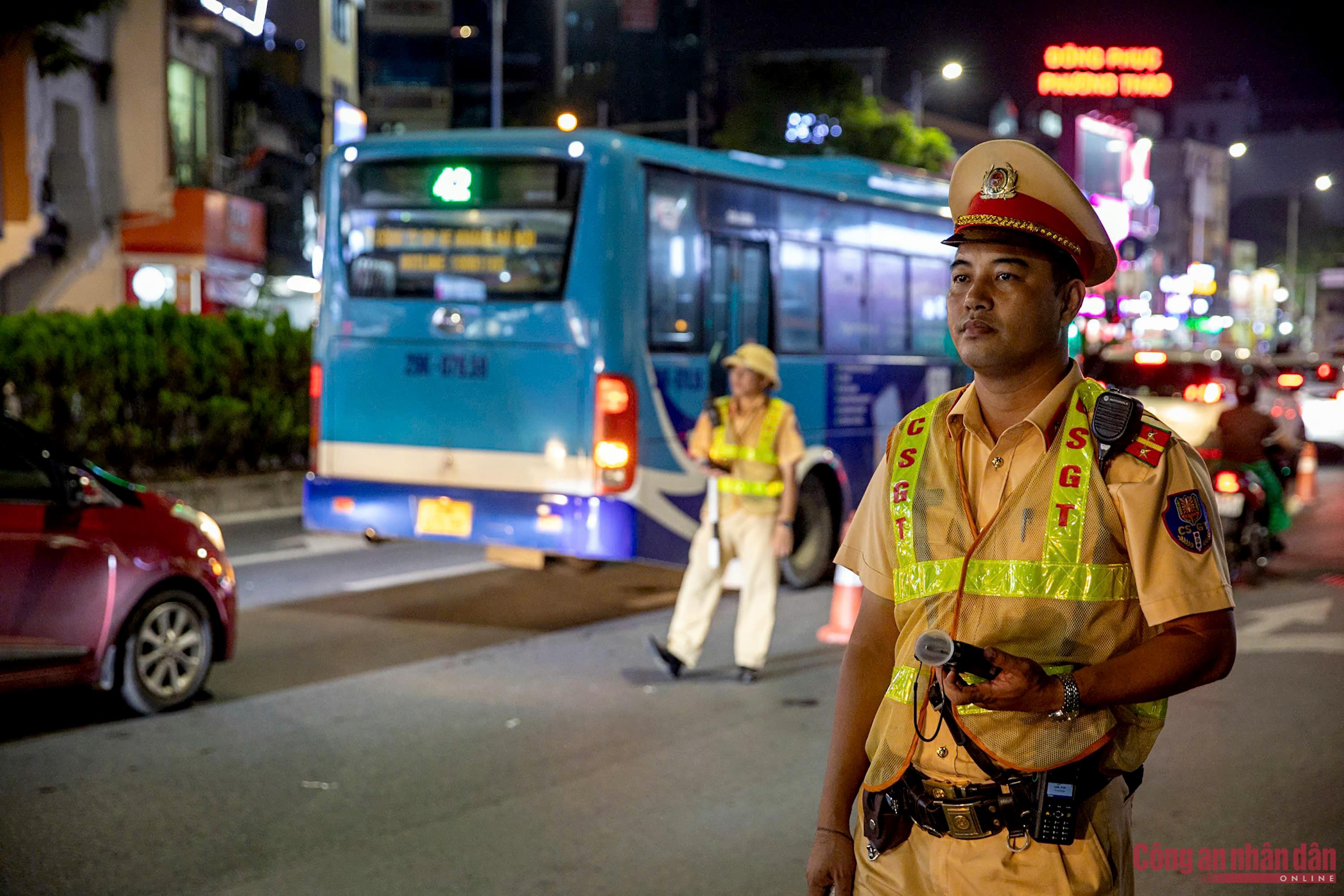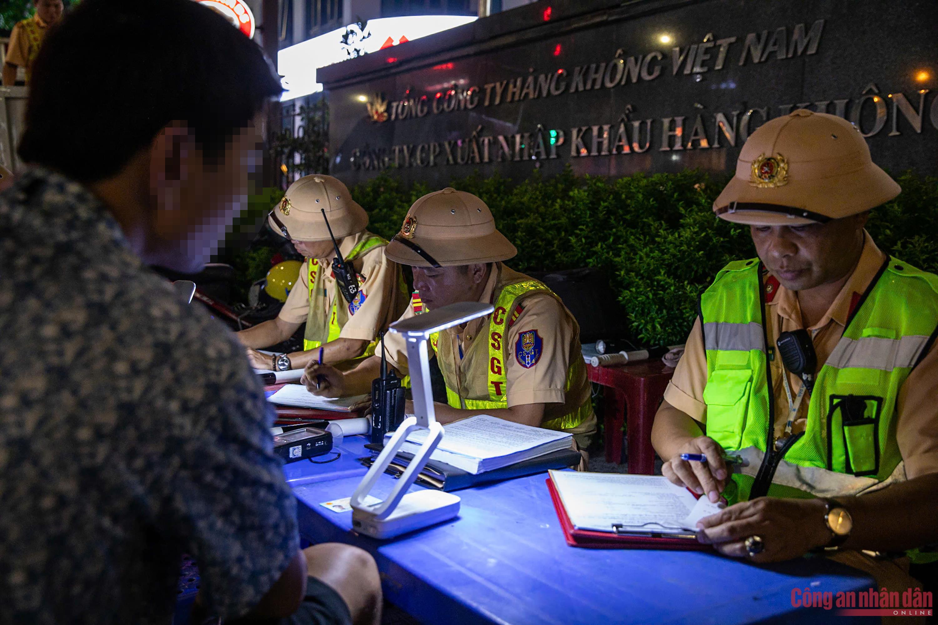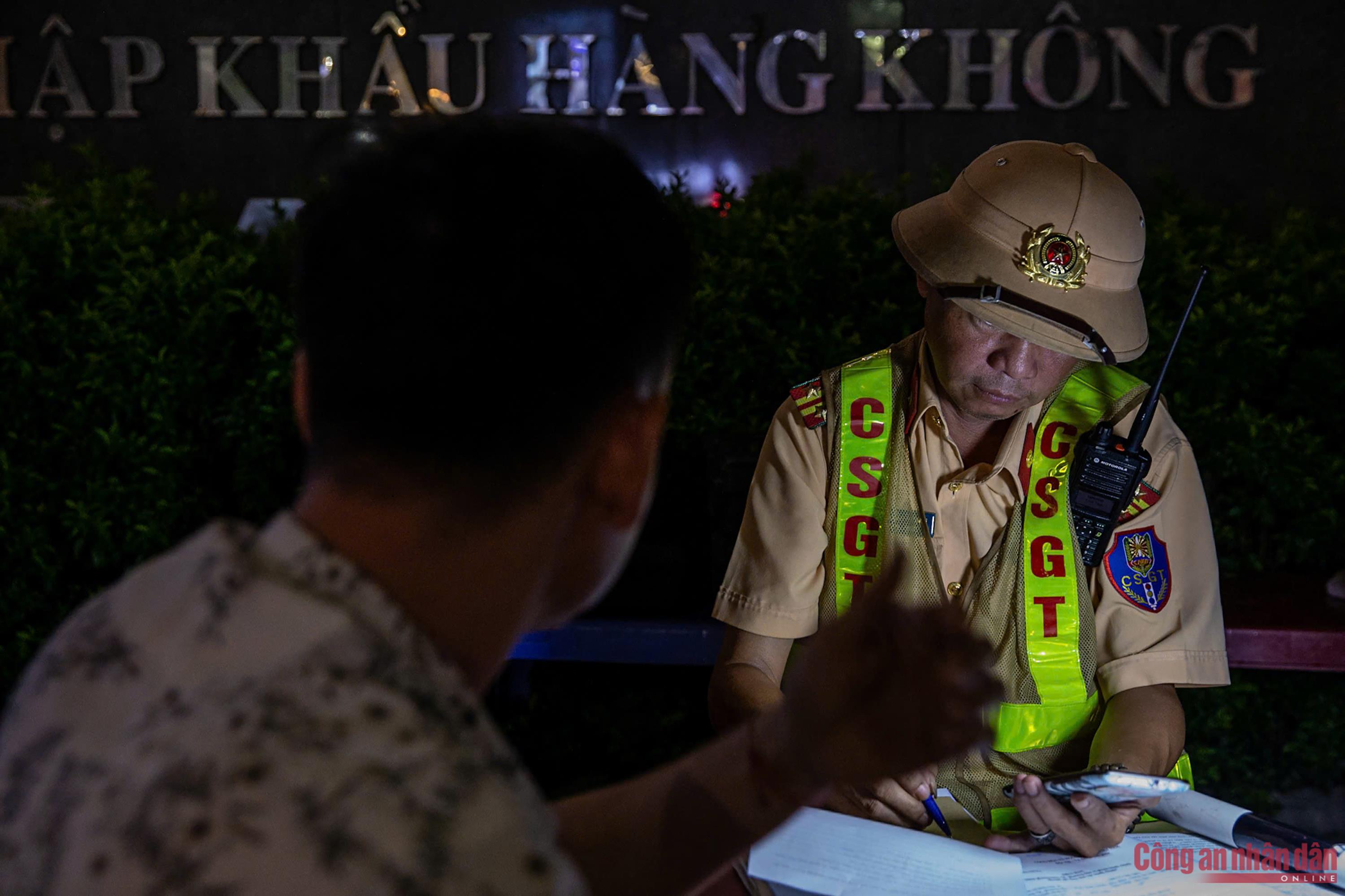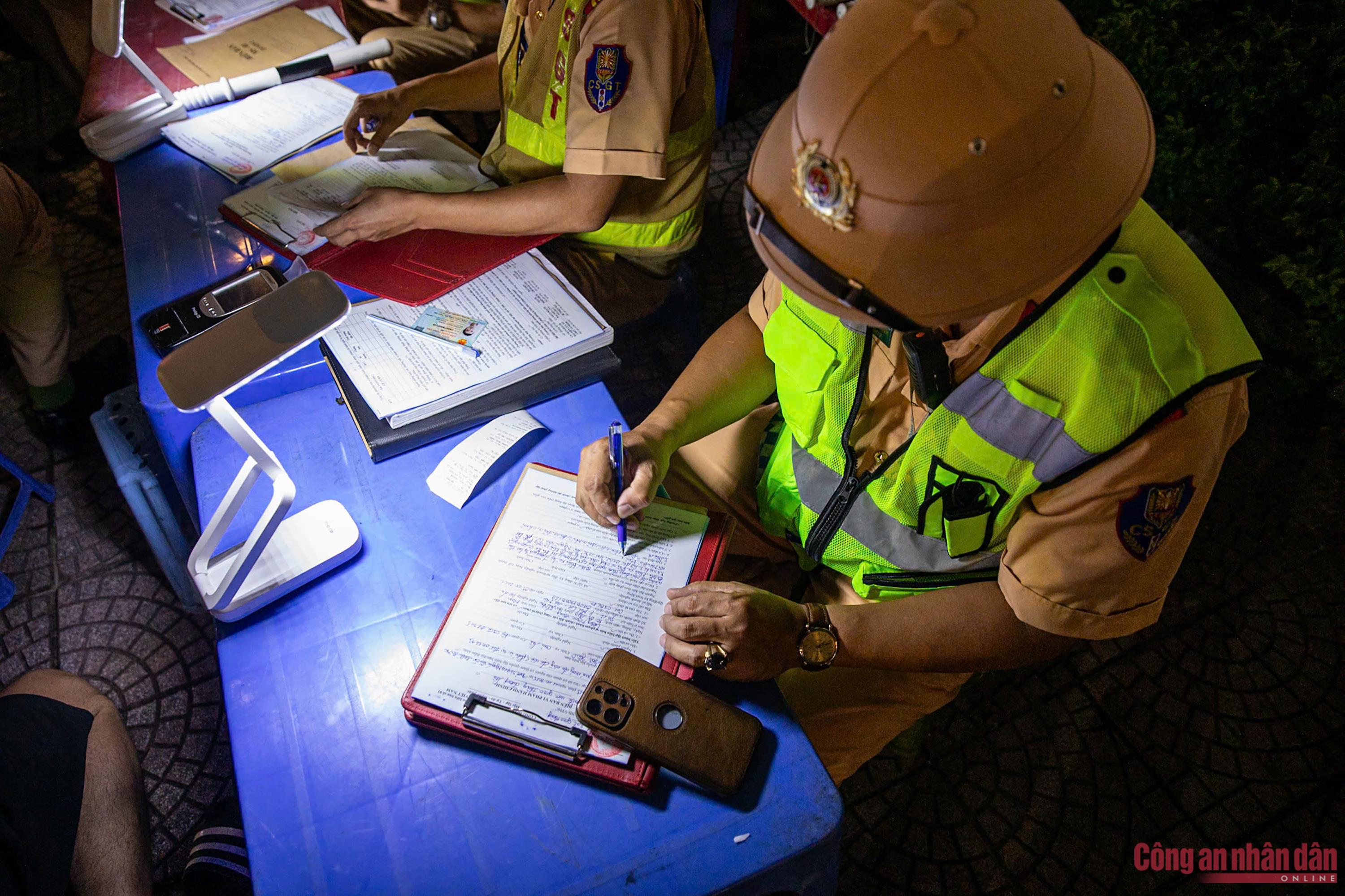 Thiếu tá Bùi Văn Quang, cán bộ Đội CSGT số 5 cho biết, vi phạm nồng độ cồn là một trong những nguyên nhân hàng đầu gây ra tai nạn giao thông nghiêm trọng. Pháp luật quy định "đã uống rượu bia thì không lái xe", tức là cấm tuyệt đối nồng độ cồn trong máu hoặc hơi thở khi điều khiển phương tiện giao thông. Mọi hành vi vi phạm đều bị xử phạt nghiêm khắc bao gồm phạt tiền rất cao, trừ điểm giấy phép lái xe hoặc tước bằng trong thời gian dài. Trong trường hợp gây tai nạn giao thông có liên quan đến nồng độ cồn, người vi phạm còn có thể bị truy cứu trách nhiệm hình sự.Ghi nhận thực tế cùng các tổ công tác của Đội CSGT số 5 đến hơn 23h đêm, qua dừng kiểm tra hàng trăm lượt phương tiện bao gồm cả ô tô và xe máy, Cảnh sát đã phát hiện nhiều trường hợp vi phạm nồng độ cồn, chủ yếu là người điều khiển xe máy.Khi được CSGT thông báo mức vi phạm và xử phạt, tất cả các lái xe đều khẳng định bản thân tuân thủ luật, ý thức rất rõ việc uống rượu bia thì không được điều khiển xe máy ra đường. Nhưng khi nói về nguyên nhân tại sao vi phạm thì tất cả đều ấp úng, không nói ra được.Cảnh sát sử dụng máy quay chuyên dụng ghi lại kết quả kiểm tra vi phạm nồng độ cồn ở mức 1 (dưới 0,25 mg/L khí thở) của một tài xế xe máy.Đơn cử như trường hợp nam tài xế xe máy B.V.T. qua kiểm tra phát hiện vi phạm nồng độ cồn mức 0,335 mg/L khí thở. Nam tài xế cho biết, trong bữa ăn tối có được mời uống chút rượu ngâm nhưng rất ít "chỉ hai cái long đen" nên khá tự tin rằng không bị say và nếu có thổi nồng độ cồn cũng không lên nhưng kết quả thực tế qua máy đo của CSGT lại phát hiện ở mức cao.Cá biệt, có trường hợp tài xế V.H. vi phạm nồng độ cồn ở mức 0,731 mg/L khí thở, gấp gần 2 lần mức "kịch khung" được quy định tại Nghị định 168. Lý do được người này cho biết là bởi "nể bạn" nên đã uống bia từ chiều đến tối rồi điều khiển xe máy về nhà.Quá trình tổ CSGT làm nhiệm vụ, nhiều trường hợp tài xế xe máy sau khi sử dụng rượu bia khi phát hiện lực lượng chức năng đã tìm cách "đổi tài" rồi xuống xe dắt bộ để trốn tránh việc kiểm tra.Cảnh sát lập biên bản xử phạt các trường hợp vi phạm.Cũng theo Đội CSGT số 5, trong thời gian qua, đơn vị đã đẩy mạnh công tác tuyên truyền đến người dân cũng như các nhà hàng, quán nhậu nhằm nâng cao ý thức tuân thủ luật giao thông. Song song với đó, hoạt động tuần tra kiểm soát, xử lý vi phạm nồng độ cồn vẫn được duy trì, làm mạnh, làm rát, liên tục thay đổi trong nhiều khung giờ trên các tuyến thuộc địa bàn Đội quản lý để kịp thời phát hiện, xử lý nghiêm vi phạm. Việc kiểm soát chặt nồng độ cồn tại các cửa ngõ Thủ đô không chỉ góp phần răn đe, nâng cao ý thức của người tham gia giao thông mà còn thể hiện tinh thần quyết liệt của lực lượng CSGT Hà Nội trong bảo đảm trật tự, an toàn giao thông, nhất là vào thời điểm cuối tuần và các dịp lễ, sự kiện lớn.Theo báo cáo của Phòng CSGT Hà Nội, từ ngày 2/10 đến 8/10, thông qua công tác tuần tra kiểm soát, lực lượng CSGT toàn thành phố đã xử lý 2.917 trường hợp vi phạm, tạm giữ 1.244 phương tiện, tước giấy phép lái xe 68 trường hợp, trừ điểm giấy phép lái xe 384 trường hợp. Trong đó, riêng vi phạm nồng độ cồn có 855 trường hợp.