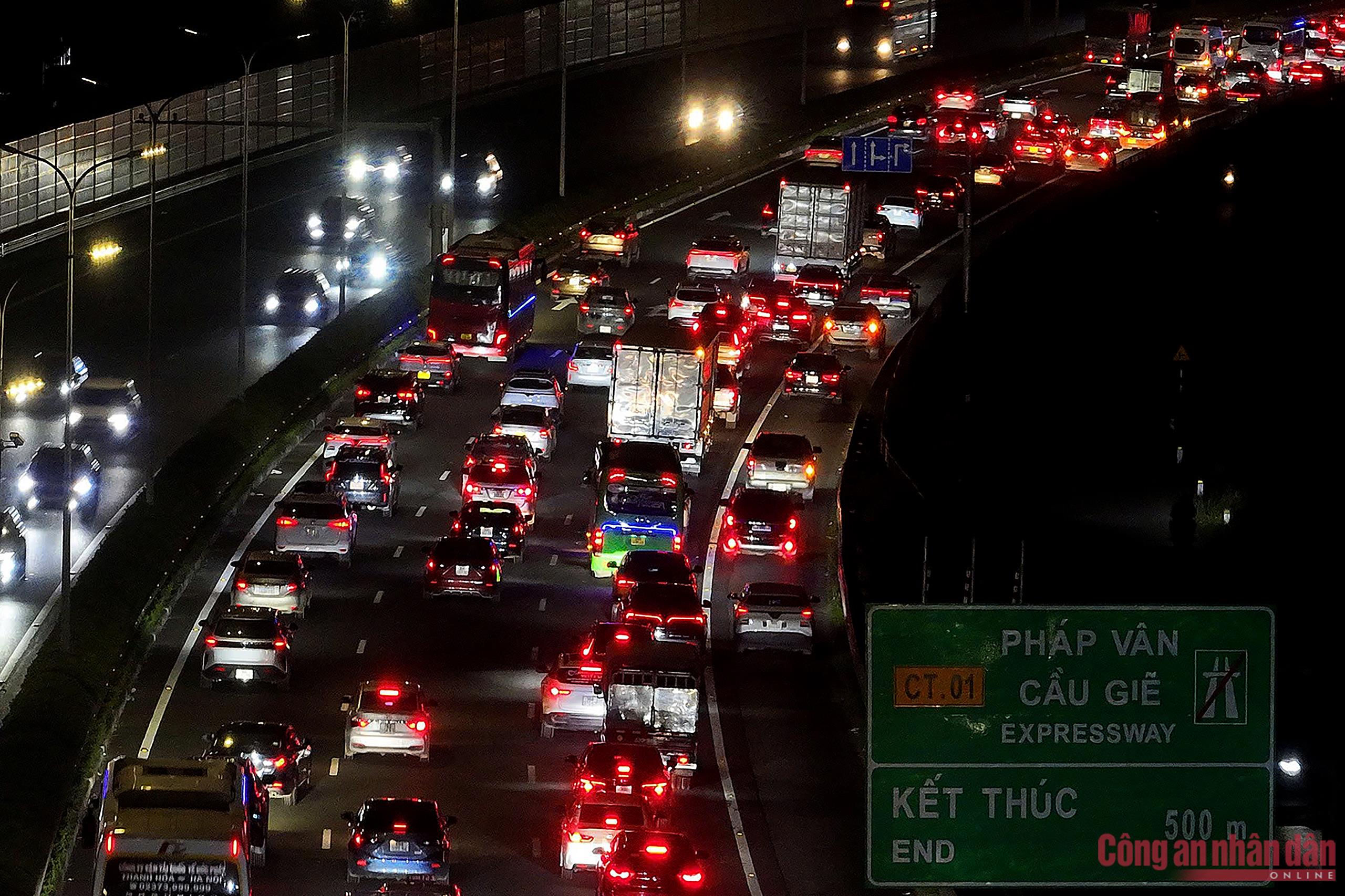 Đêm 21/2 (tức mùng 5 Tết), giao thông tại cửa ngõ phía Nam Thủ đô vẫn tương đối "nóng", mật độ phương tiện ở đoạn cuối cao tốc Pháp Vân - Cầu Giẽ theo hướng vào Hà Nội vẫn tiếp tục đông đúc. Nhiều người cho hay họ chủ động chọn đi đêm nhưng không thoát khỏi cảnh ùn tắc.
