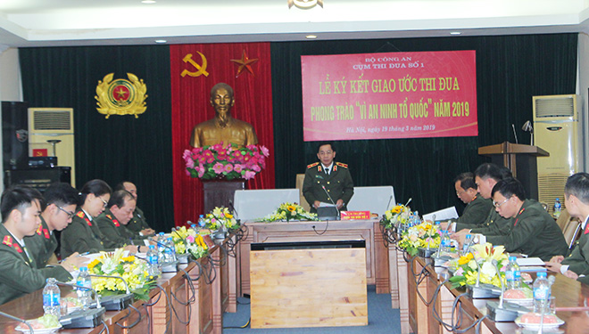 Tại Lễ Ký kết, Thiếu tướng Nguyễn Mạnh Dũng, Cụm trưởng Cụm thi đua số 1 đã thay mặt các đơn vị phát động phong trào thi đua “Vì An ninh Tổ quốc” năm 2019 với 6 nội dụng.
