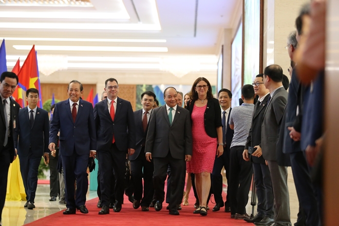 Chiều cùng ngày, Thủ tướng Nguyễn Xuân Phúc đã tiếp Bộ trưởng Bộ Môi trường kinh doanh, Thương mại và doanh nghiệp Romania, Đại diện Hội đồng EU Stefan-Radu Oprea và bà Cecilia Malmstrom, Cao uỷ Thương mại EU sang Việt Nam dự Lễ ký Hiệp định Thương mại tự do (EVFTA) và Hiệp định Bảo hộ Đầu tư (IPA) giữa Việt Nam và Liên minh Châu Âu.