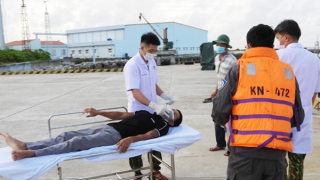 Một ngư dân lâm bệnh khi đang hành nghề khai thác thủy sản ở vùng biển Trường Sa (Khánh Hòa) đã được tổ công tác trên tàu KN-401 của Chi đội Kiểm ngư số 4 tiếp nhận, đưa về đất liền để tiếp tục điều trị.