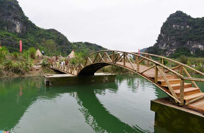 Chạy dọc ngôi làng là con đường được sắp đặt bởi những phiến đá tự nhiên, được ban tổ chức lấy từ Hoa Lư.