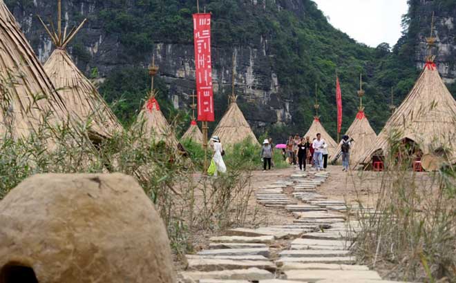 Một ngôi làng sử dụng làm bối cảnh trong phim Kong: Đảo đầu lâu tại khu du lịch Tràng An (Ninh Bình) vừa được phục dựng nguyên mẫu để du khách tham quan.