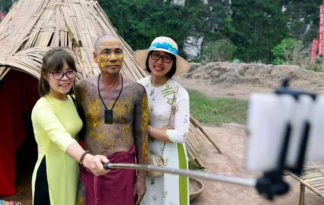 | Ông Chu Đức Bạo (60 tuổi, trú tại xã Ninh Hải, Hoa Lư) vinh dự được đóng vai con trai ông trưởng tộc trong phim Kong: Đảo đầu lâu. Ông cho biết rất tự hào được tham gia một bộ phim nổi tiếng, góp phần quảng bá du lịch Việt Nam. |