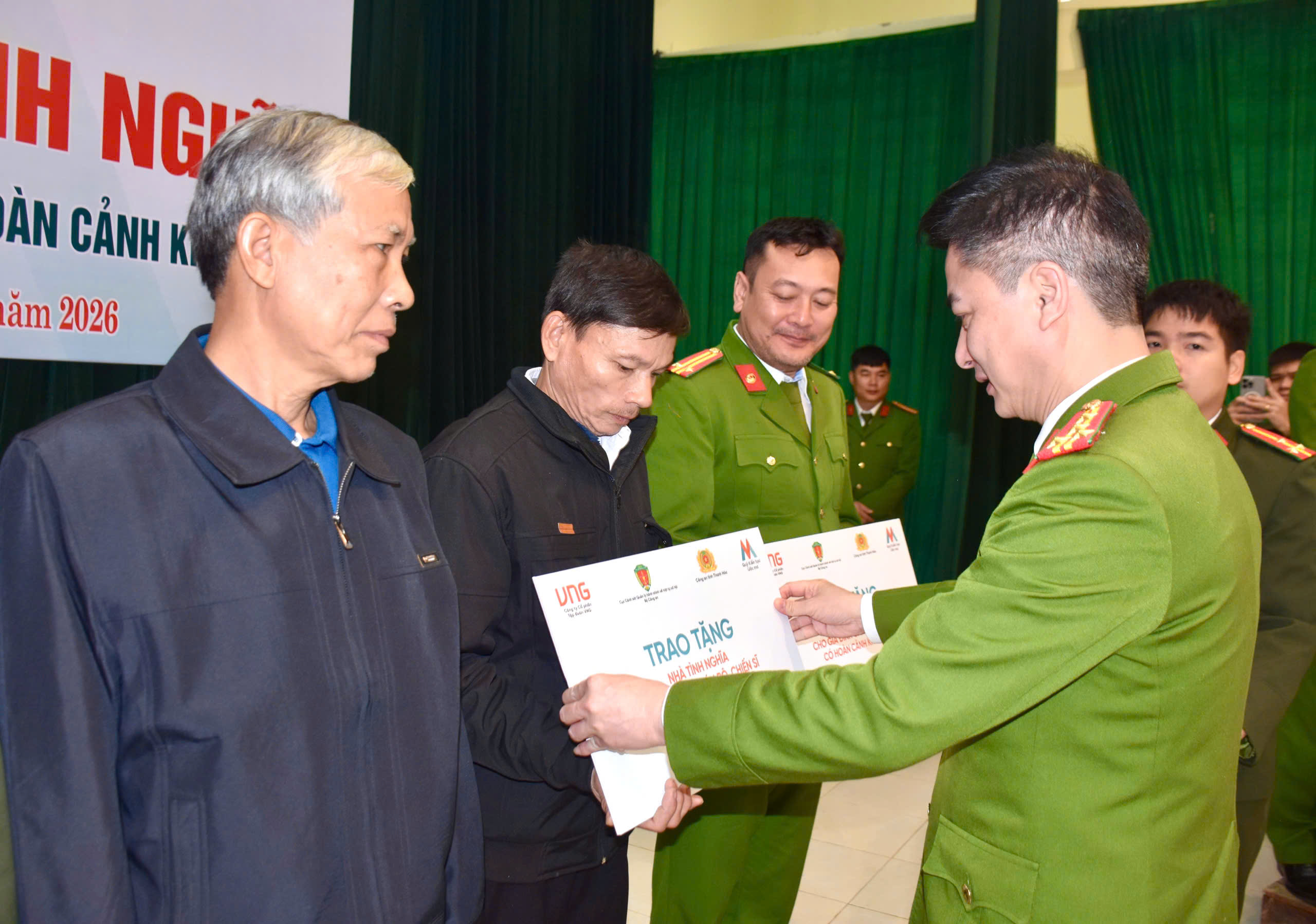 Ngày 26/1, hưởng ứng phong trào thi đua “Chung tay xóa nhà tạm, nhà dột nát trên phạm vi cả nước” do Chính phủ và Bộ Công an phát động, nhân dịp Tết Nguyên đán Bính Ngọ 2026, Cục Cảnh sát quản lý hành chính về trật tự xã hội (QLHC về TTXH) phối hợp với nhà hảo tâm đã tổ chức Lễ bàn giao, trao 10 căn nhà tình nghĩa tặng gia đình CBCS có hoàn cảnh khó khăn thuộc Công an tỉnh Thanh Hóa, tổng kinh phí khoảng 1,3 tỷ đồng.